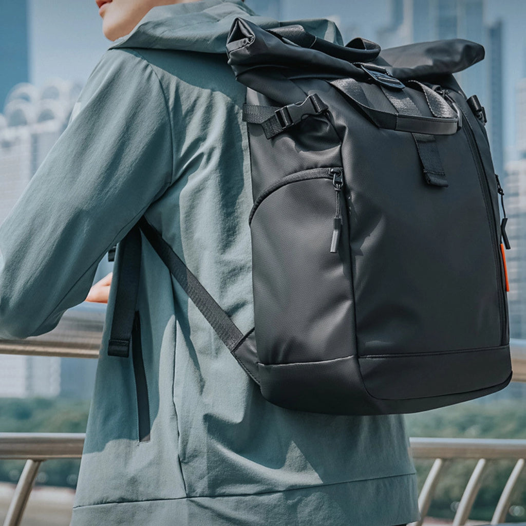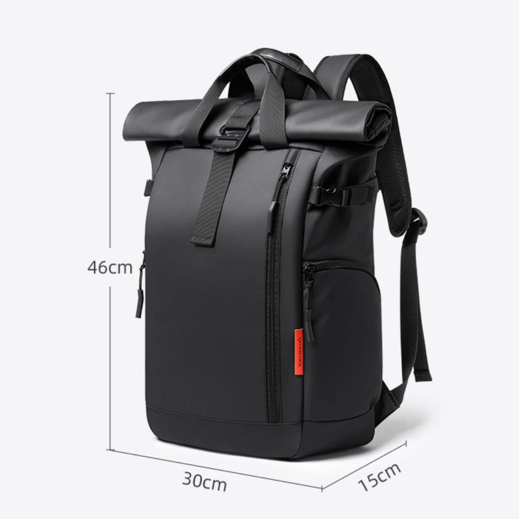 The Waterproof Roll-Top Backpack is designed for commuting, business travel and daily city use. With a secure roll-top buckle, a 15.6" laptop compartment and organised storage throughout, it keeps your essentials protected and easy to reach. The water-resistant outer fabric helps handle light rain and splashes, while the breathable back panel and adjustable straps support comfortable all-day wear.