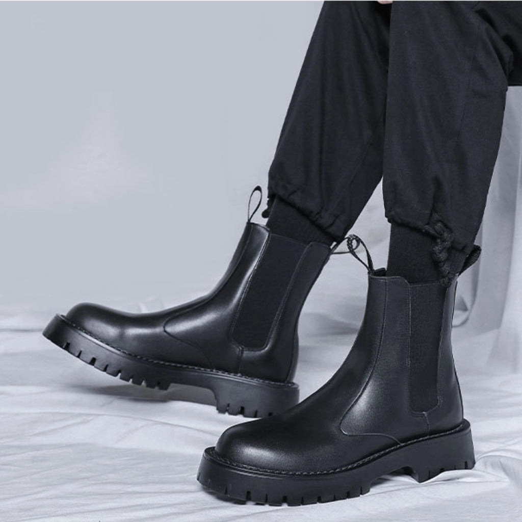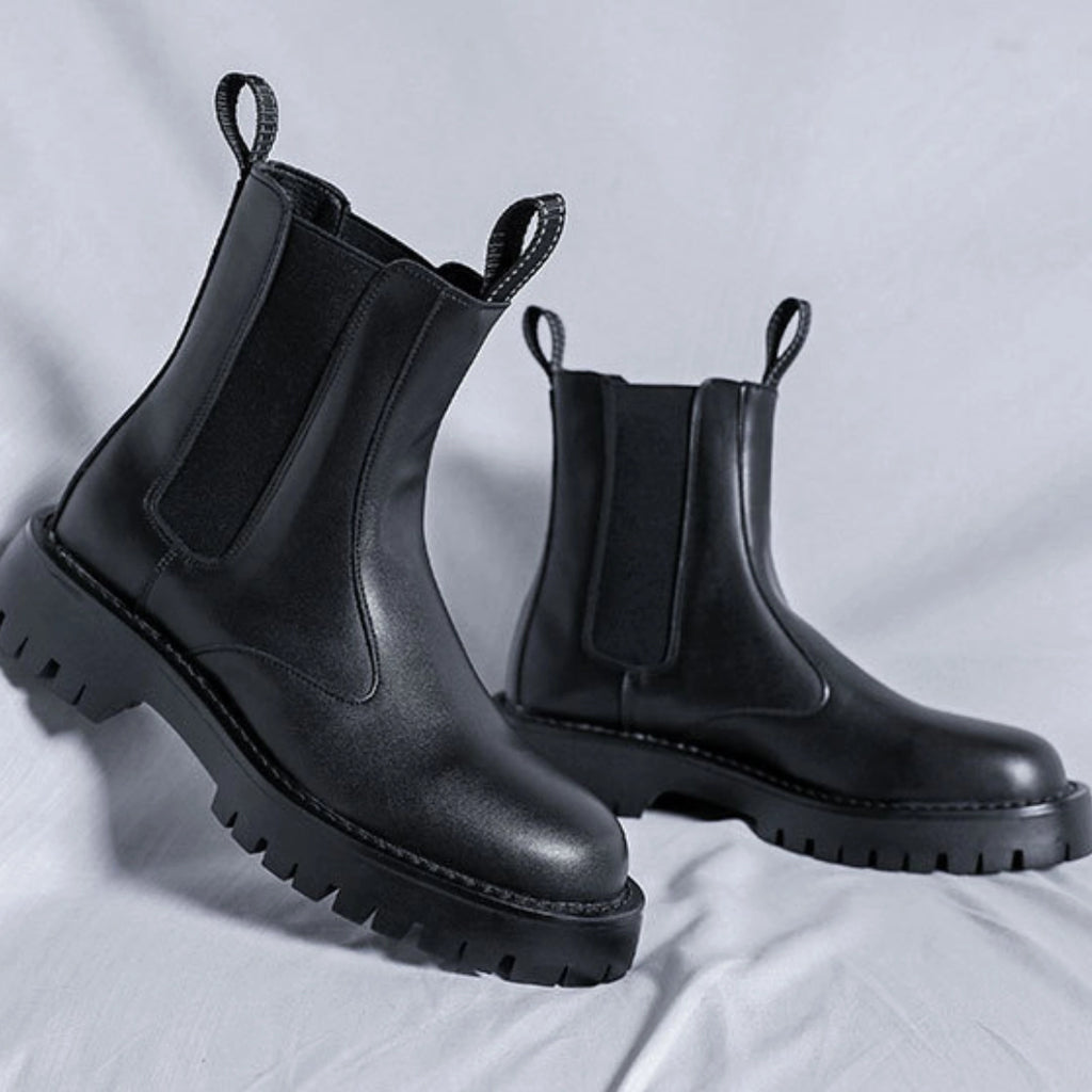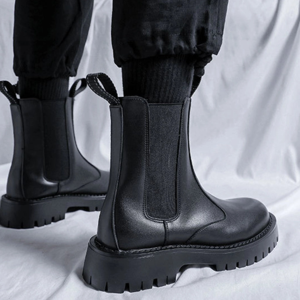 The Men’s High-Ankle Urban Leather Boots are designed for modern urban wear, combining clean styling with everyday durability. Crafted from smooth premium leather and finished with elastic side panels and rear pull tabs, these boots offer effortless on-and-off wear. A chunky, anti-slip rubber sole delivers stability and grip, making them ideal for daily city use with a refined, contemporary edge.