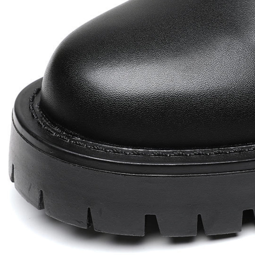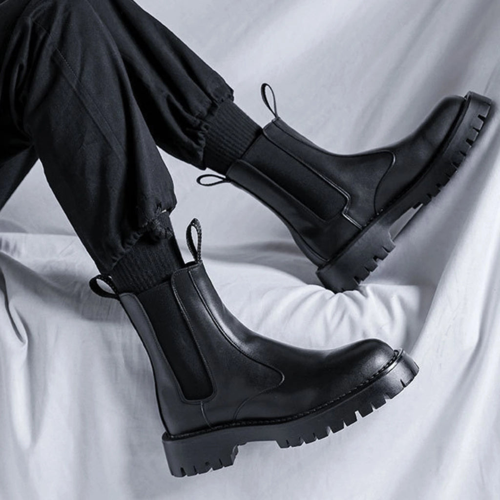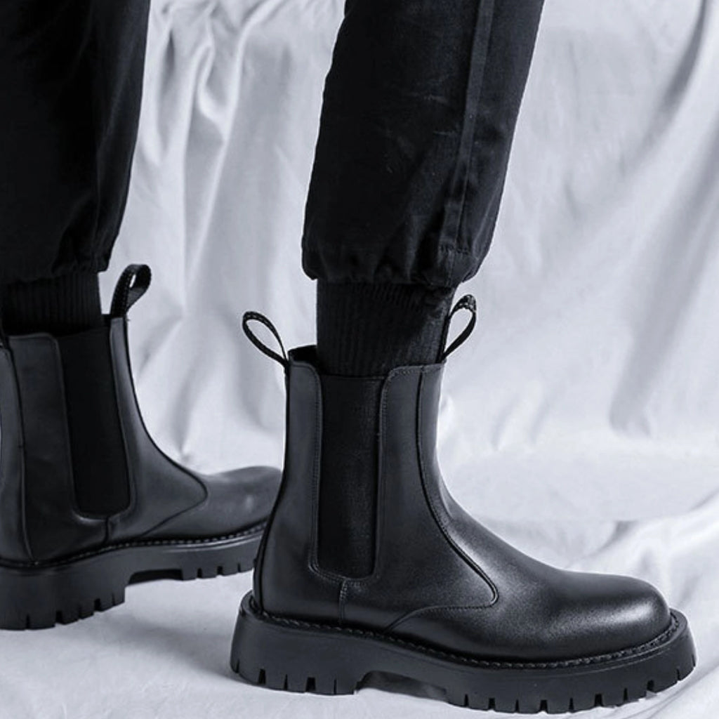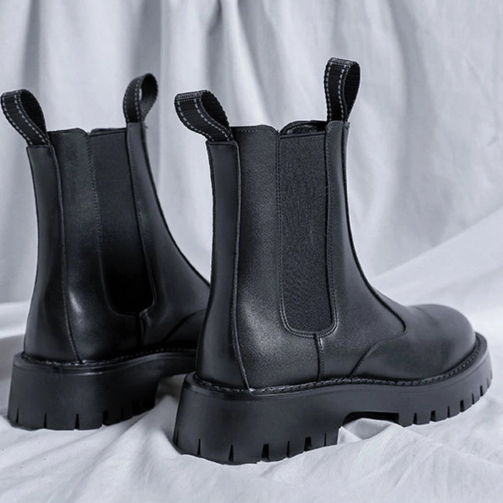 The Men’s High-Ankle Urban Leather Boots are designed for modern urban wear, combining clean styling with everyday durability. Crafted from smooth premium leather and finished with elastic side panels and rear pull tabs, these boots offer effortless on-and-off wear. A chunky, anti-slip rubber sole delivers stability and grip, making them ideal for daily city use with a refined, contemporary edge.