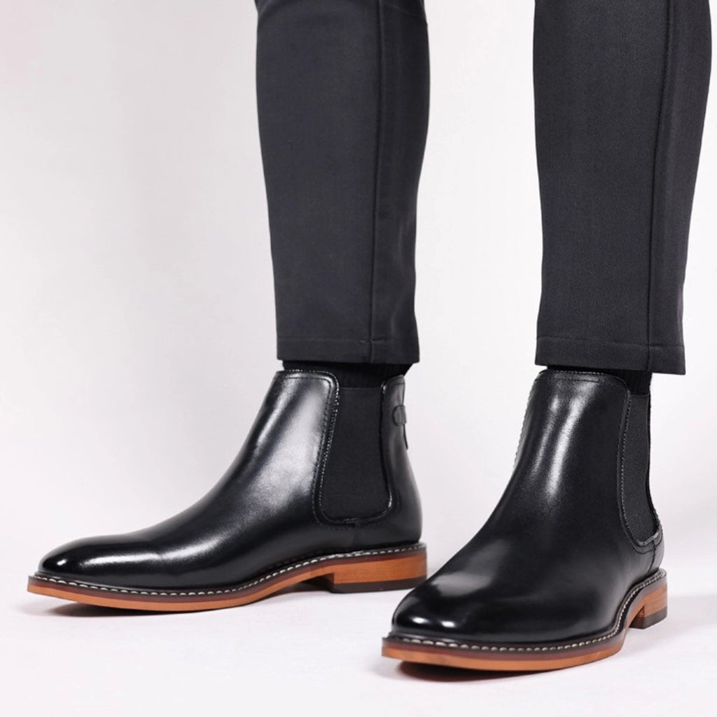 Finished with a durable leather and rubber sole construction, these boots deliver stability, flexibility and lasting quality — ideal for smart casual and business-casual settings.