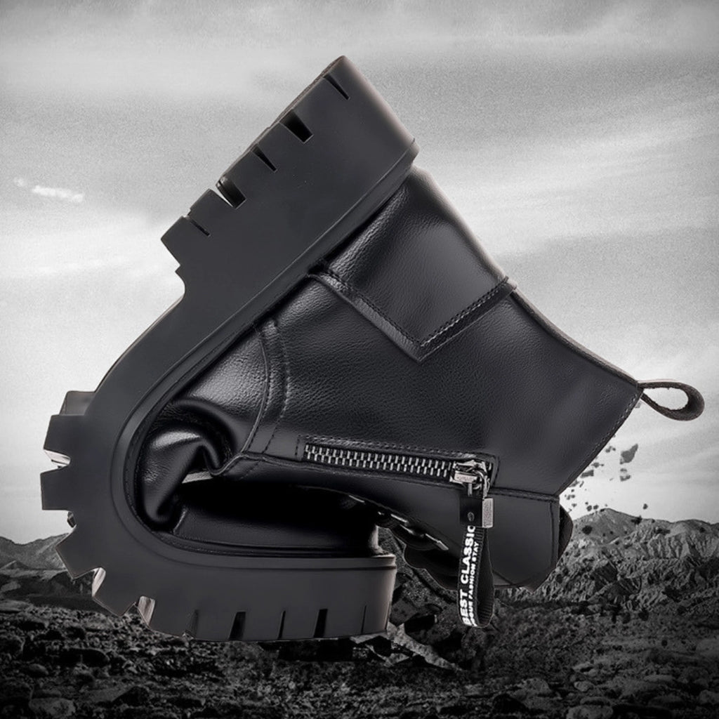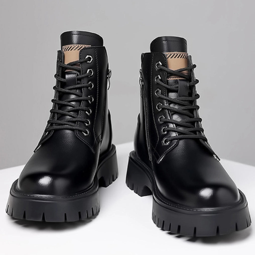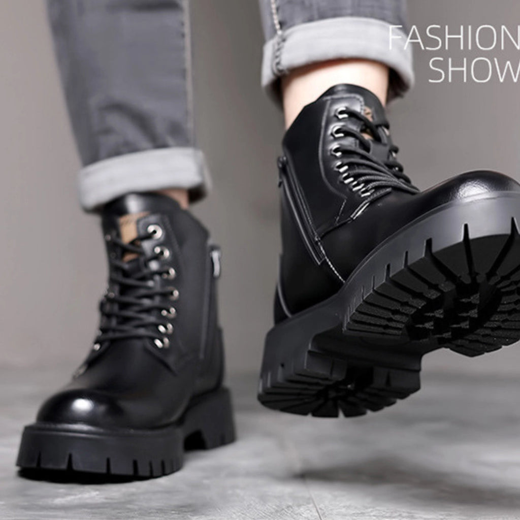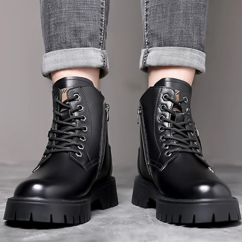 The Men’s Premium Leather City Boots are built for cold-weather commuting and everyday urban wear. Crafted in smooth black leather with a supportive ankle profile, lace-up front and practical side zip, they deliver a confident, modern silhouette with easy on-and-off. Finished with a warm wool lining and a chunky anti-slip rubber outsole, they’re designed to keep you comfortable, stable and protected through winter streets and wet pavements.